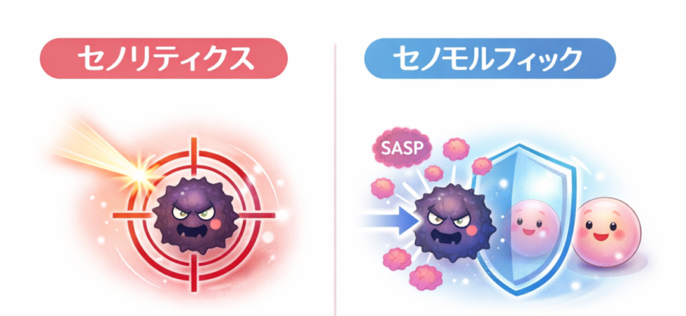 老化細胞へのアプローチには、主に以下の2つの考え方があります。